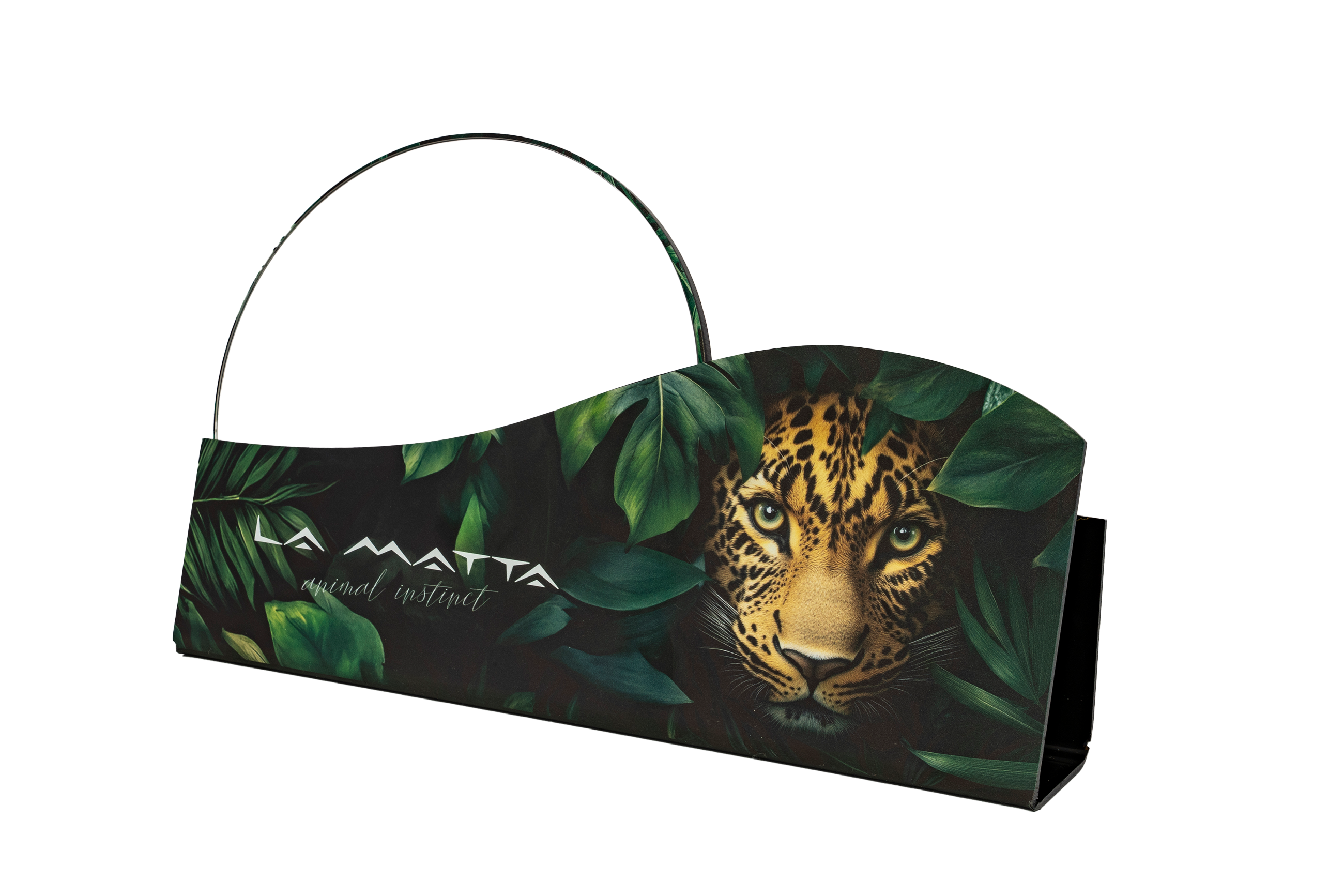 Decisamente grande e con un accenno di cat eye: c’è forse qualcosa di più seducente di questo nuovo modello di La Matta? La regola principale è sempre la stessa: animalier provocante e colore intrigante. Le tre varianti colore sono un inno al proprio lato istintivo e audace.